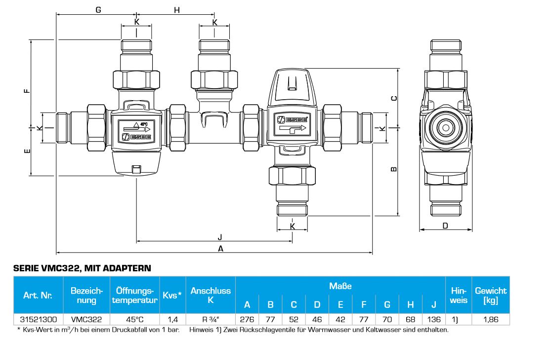 - ESBE VMC322 | 1,4 Kvs | Solar-Kit mit Verschraubungsset R ¾''