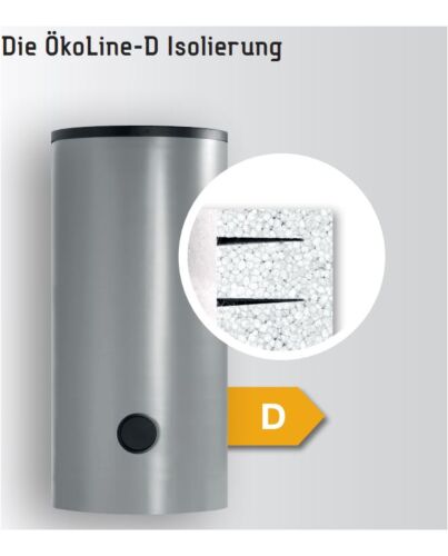 Die Isolierung hat ca. 10 % weniger Wärmestillstandverlust gegenüber herkömmlichen Weichschaum- oder Vliesisolierungen. Desweiteren zeichnet sie sich ÖkoLine-D durch ihre zusätzliche Boden- und Deckeldämmung aus und das bei einem Gewicht von gerade mal 15 kg/m³.