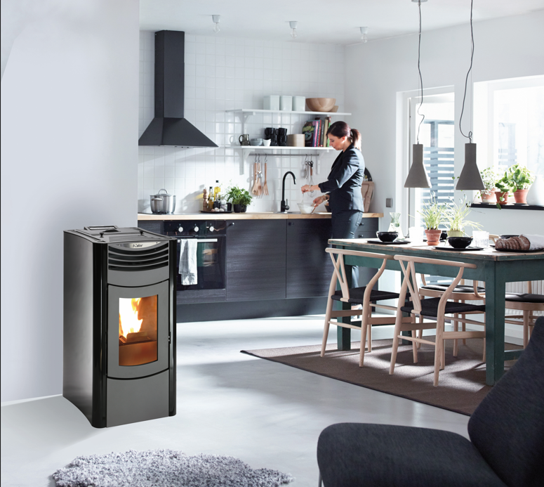 Effizienter Pelletofen mit Kanalisierungsfunktion und optionalem Wi-Fi