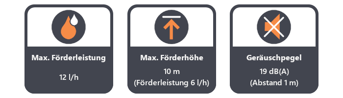 | Max. Förderleistung | 12 l/h bei Nullförderhöhe |