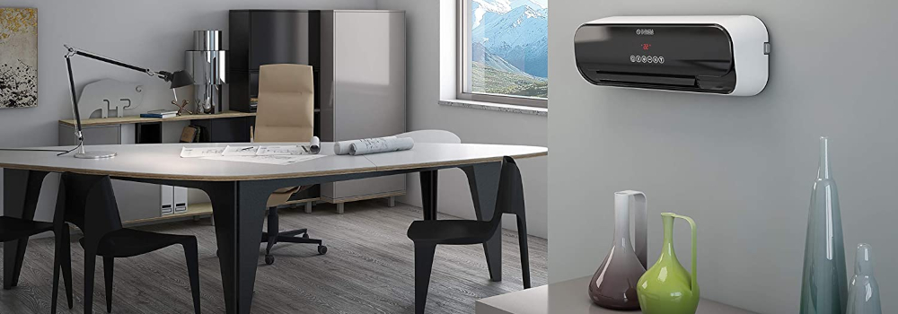 Der Wand-Heizlüfter besticht durch sein geschmackvolles Design, die einfache Steuerung mittels Fernbedienung und die komfortable Luftverteilung.