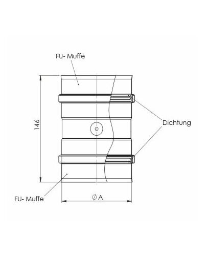 Pellet Kesselanschluss mit Doppelmuffe und Messstutzen DN 80 mm schwarz