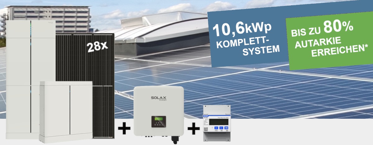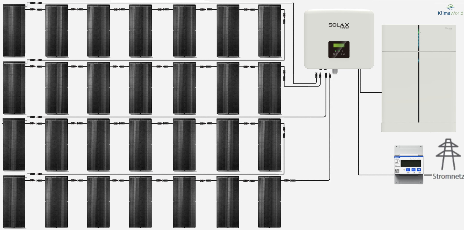 - Solax Hybrid Solaranlage 10,6 kW + T-BAT H9 Stromspeicher | kompl. Set