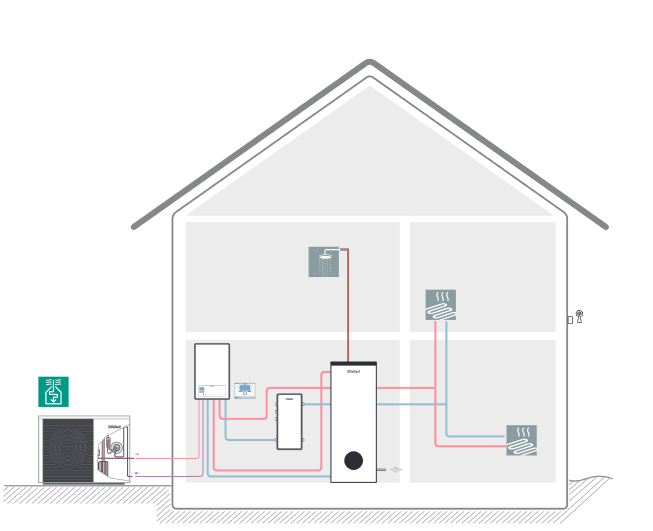 - einfache, bedienerfreundliche Systemsteuerung (multiMATIC 700 oder sensoCOMFORT VRC 720)