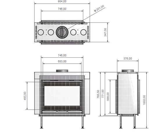 Erweiterbar mit Fuß und/oder Rauchrohrverkleidung.