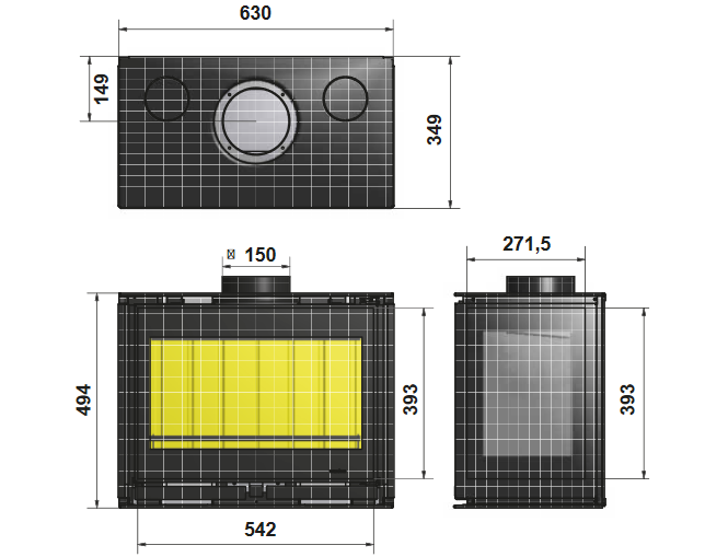 Universeller Holzkamineinsatz SQUARE 60 3-seitig | 6 kW