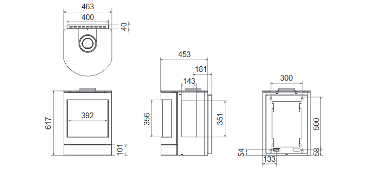 - Abgasstutzen: Ø 100/150mm | Anschluss oben