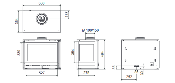 - Abgasstutzen: Ø 100/150mm | Anschluss oben